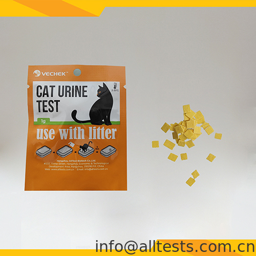 3. Kedi idrarını yaptıktan sonra 5 dakika bekleyin, kedi kumundaki idrarın ıslandığı alanın renk değişimini gözlemleyin.
