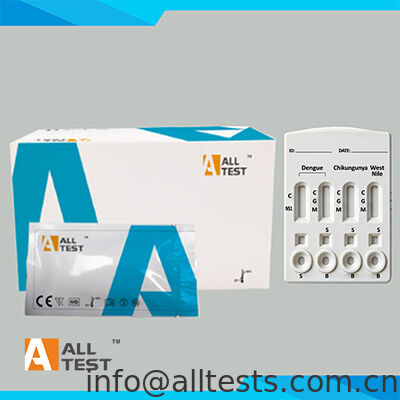 Dengue/Chikungunya/Batı Nil Virüsü Kombine Hızlı Testi (Tam Kan/Serum/Plazma), insan tam kanı, serumu veya plazmasındaki Dengue NS1 antijeni, Dengue virüsü, Chikungunya virüsü ve Batı Nil Virüsü antikorlarının kalitatif tespiti için hızlı bir kromatografik immünolojik testtir.